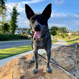 - Nova (black dog): I was born in September of 2021 to a friend in Pittsboro and I was the last of the litter to be adopted. I may be a tiny Australian cattle dog (blue heeler), but I love to play. I can keep going with the best of them and jump about six feet high. I also love the water, hanging around Josh, bothering my sister and definitely finding the person who has the treats!